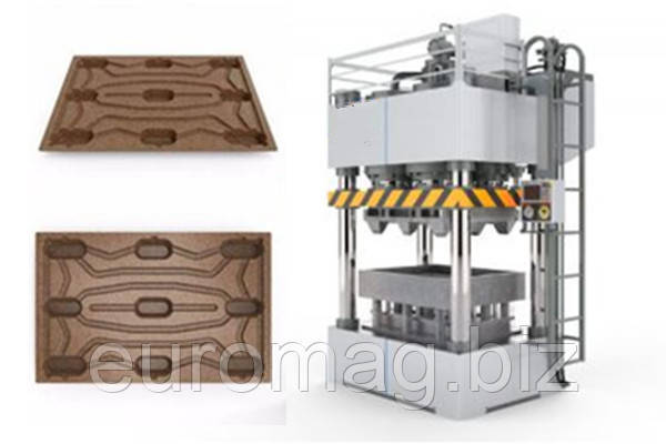 Пропонуємо Завод із виробництва пресованих піддонів — нове обладнання для виготовлення піддонів з тирси, соломи та інших відходів через подрібнення, подрібнення та пресування сировини з додаванням клею.