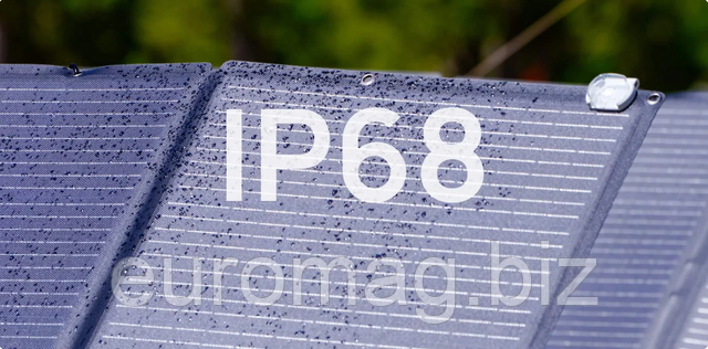 Сонячна панель EcoFlow 160 Вт має пило- та водозахист за стандартом IP68 завдяки безшовній цілісній конструкції, що робить її ідеальною для активного відпочинку, наприклад походів і походів. Плівка ETFE забезпечує додатковий захист від ультрафіолетового випромінювання, продовжуючи термін експлуатації продукту.